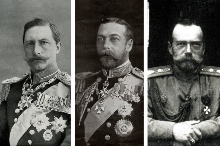 But let’s not forget that Russia’s decision to enter the war was ultimately on the shoulders of one man - Nicholas - who had personal motives outside of alliances and cultural insecurities. For starters, Nicholas was cousins with the leader of Germany, Wilhelm II (they were both also cousins of George V of England).