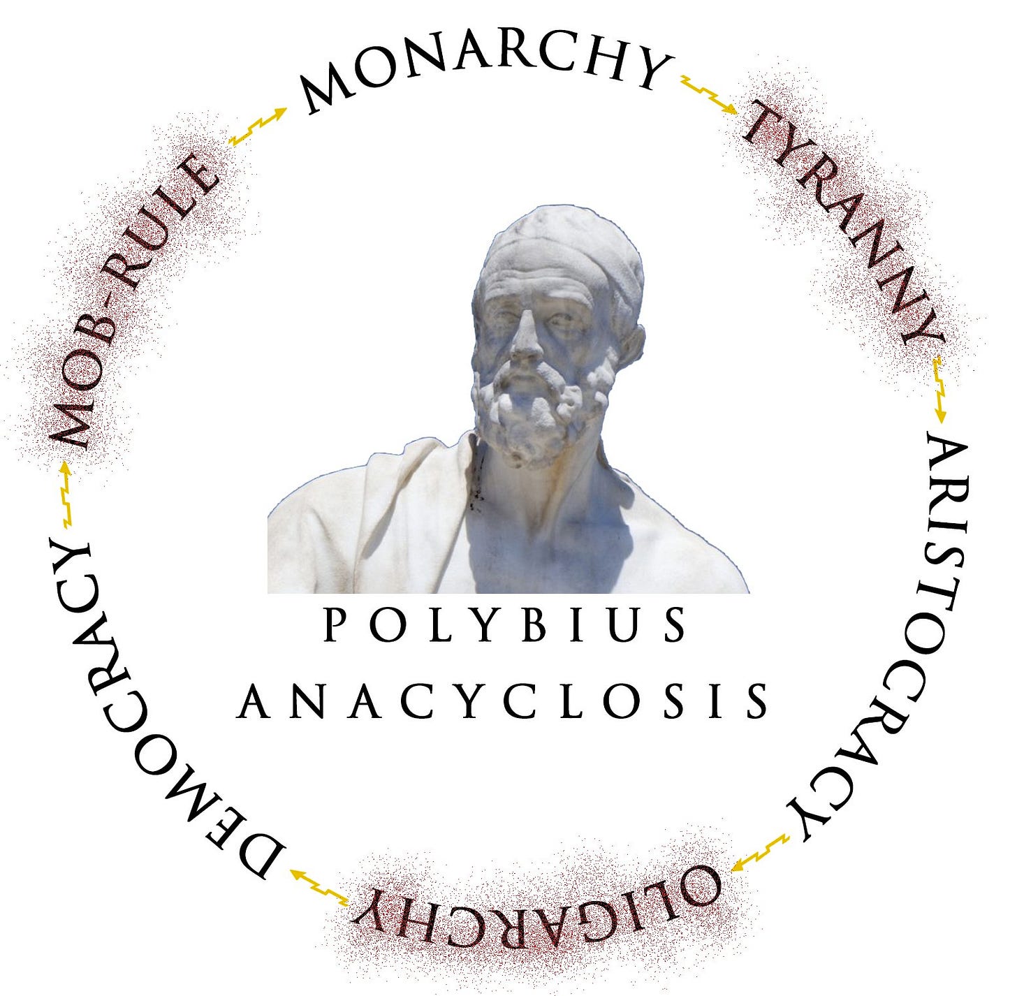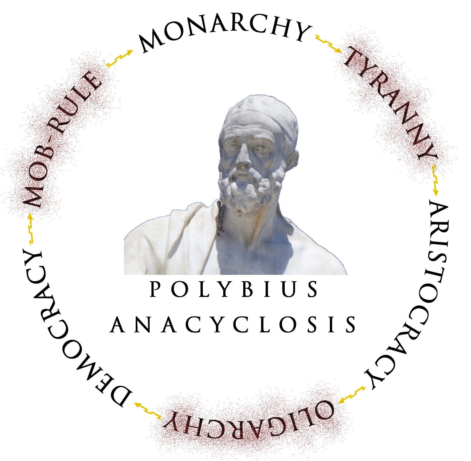Plato and Aristotle both wrote about the cycles of government, but it was the ancient historian Polybius (200 BC - 118 BC) who most succinctly puts together the theory of kyklos (Greek for “cycle”). Kyklos goes like this, there are 3 systems of government that work towards the common interest: monarchy, aristocracy, and democracy. But each of these has a degenerative form that works for the interest of the ruler(s): tyranny, oligarchy, and ochlocracy (mob rule/anarchy), respectively.