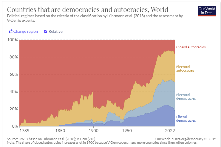 So, was Fukuyama right? I think it's too soon to tell. If the 50-100 year trend of democracies begins to break, or we see established democracies begin to fall, then we can probably say Fukuyama was wrong.