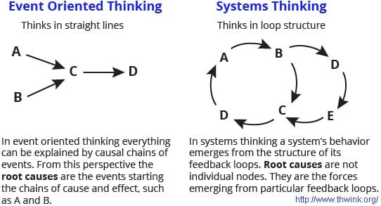 The technical term for what we have been trying to analyze so far in this essay is called Event Oriented or Cause-and-Effect Thinking, which views events as occurring linearly. Instead, it may be better for us to think about this problem using systems thinking. The best primer on systems thinking is easily Dancoland, and it's a fun read as well.