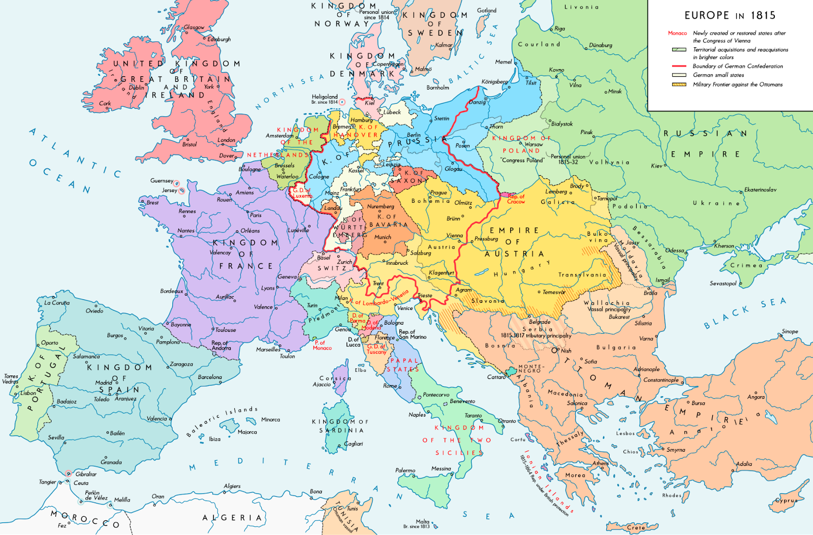Speaking of France… Napoleon was the one who ended the Holy Roman Empire when he conquered most of Europe by 1814. However, when Napoleon eventually lost and his armies retreated back to France, the war-torn German states realized they needed to organize themselves better in order to prevent any future invasions. So, in 1815 the successor to the Holy Roman Empire was born, the German Confederation.